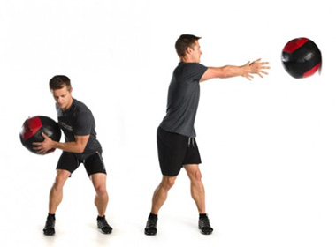 How to do it: Grab a medicine ball (the weight should feel manageable) and throw it into a wall as if you were simulating a swing. During the backswing, keep your knees bent and turn your back away from the wall. When you swing through, drive your back hip toward the wall. Keep your back flat and chest up. Catch the ball as it rebounds off the wall. Do all the reps in one direction before switching sides.