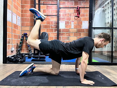 Before we focus on knee-centered movements, it is essential to build strength in your glutes and hips. These larger muscles stabilize your movements to avoid those vulnerable positions. Before beginning a knees-over-toes program, start with exercises that strengthen your glutes and hips. These include squats, donkey kicks, and bridges. Once you feel confident in your bigger muscles, adding knees-over-toes exercises is a great next step to bulletproof your knees! All exercises can be done in 3 sets with the recommended number of repetitions.