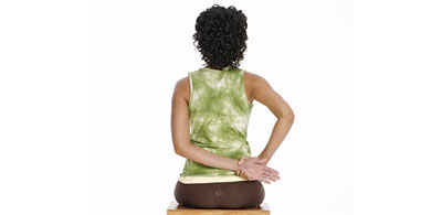 - Place your left arm behind your waist and grasp your left wrist with your right hand; gently pull your left hand toward the right side of your body