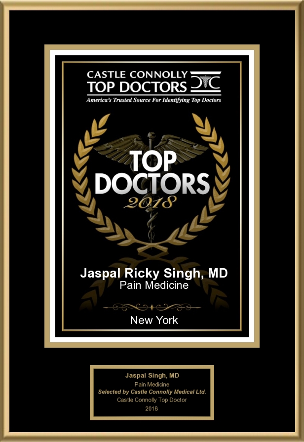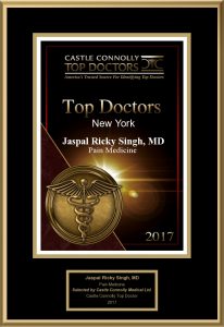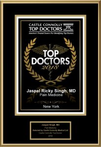 Dr. Singh has been honored as Super Doctors- New York Rising Star, New York’s Top Doctors in Pain Medicine and America’s Best Doctor by Castle Connolly.