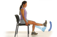 Remain seated. Extend one leg out, gradually lifting it until you can feel your quad muscles tighten (the quads are the four muscles on the front of your thigh, just above the knee). Hold for 10-20 seconds. Repeat with your other leg. You can also do this exercise in a standing position to improve your balance.