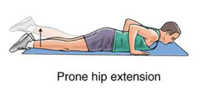 Lie on your stomach with a pillow underneath your hips. Bend one knee, tighten up your buttocks muscles, and lift your leg off the floor about 6 inches. Keep the leg on the floor straight. Hold for 5 seconds. Then lower your leg and relax. Do 3 sets of 10.Repeat this exercise for the other leg.