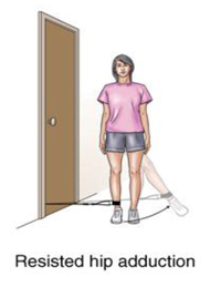 Stand sideways near a doorway. Tie elastic tubing around the ankle on your leg which is away from the door. Knot the other end of the tubing and close the knot in the door. Extend your leg out to the side, keeping your knee straight. Return to the starting position. Do 3 sets of 10.To challenge yourself, move farther away from the door.