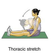 While sitting in a chair, clasp both arms behind your head. Gently arch backward and look up toward the ceiling. Repeat 10 times. Do this several times per day.